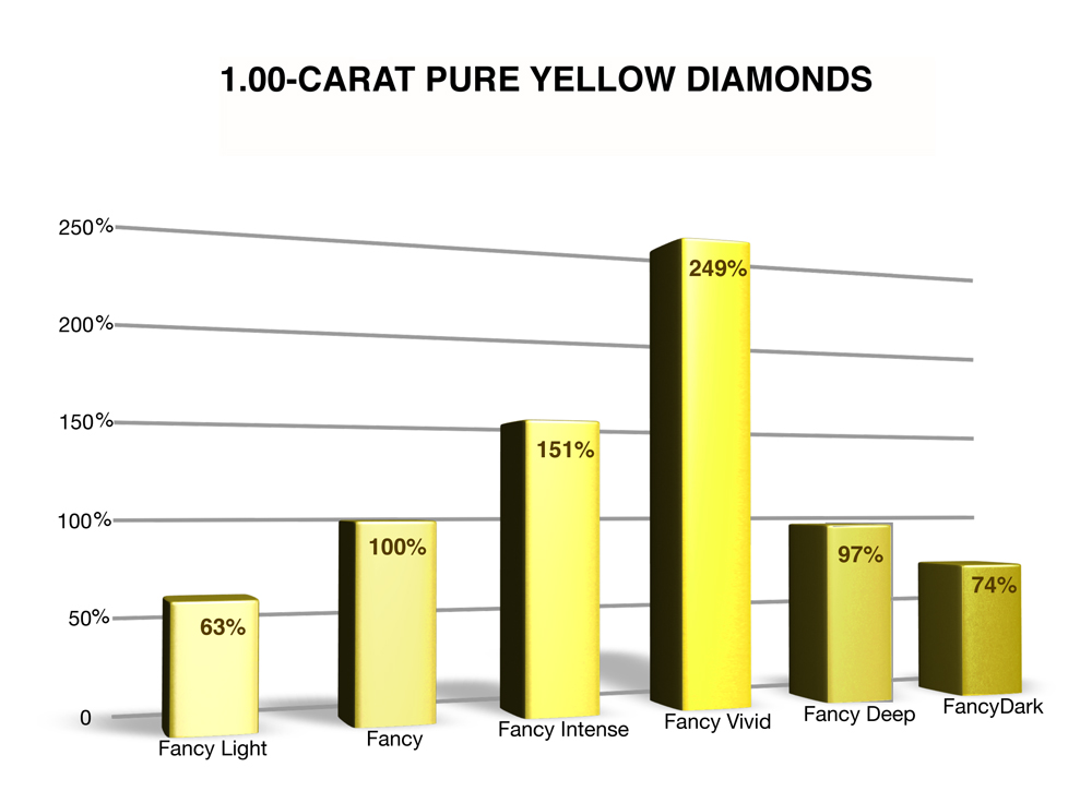 In a report in this issue of the Gem Color Report, the esteemed Wall Street Journal has declared yellow to be the new color of luxury. For our part, in our January, May and July 2012 newsletter, we have been following price trends for yellow colored diamonds, taking periodical looks at how the market has been reacting. Four months after our last examination, we have decided that it would be a good opportunity to follow up on our promise to revisit the issue.